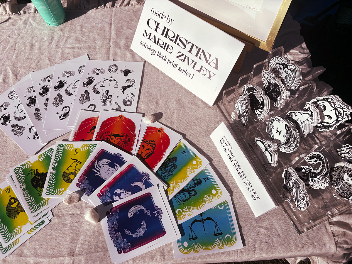The Astrology Block Print Series focuses on the 12 zodiac signs, I designed and illustrated. The symbolic characters of the zodiac are carefully hand carved into rubber/linoleum blocks then manually printed, producing one-of-a-kind reliefs. The designs are offered as black and white, or featured on a colorful background with a palette chosen to capture the essence of each sign’s element.
