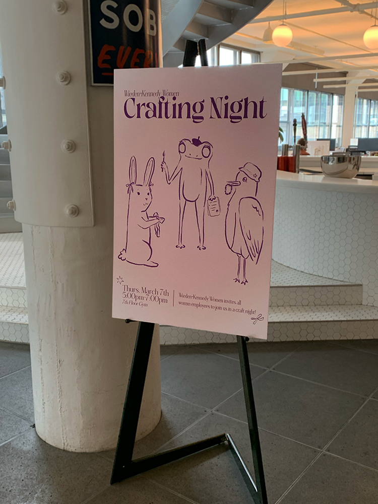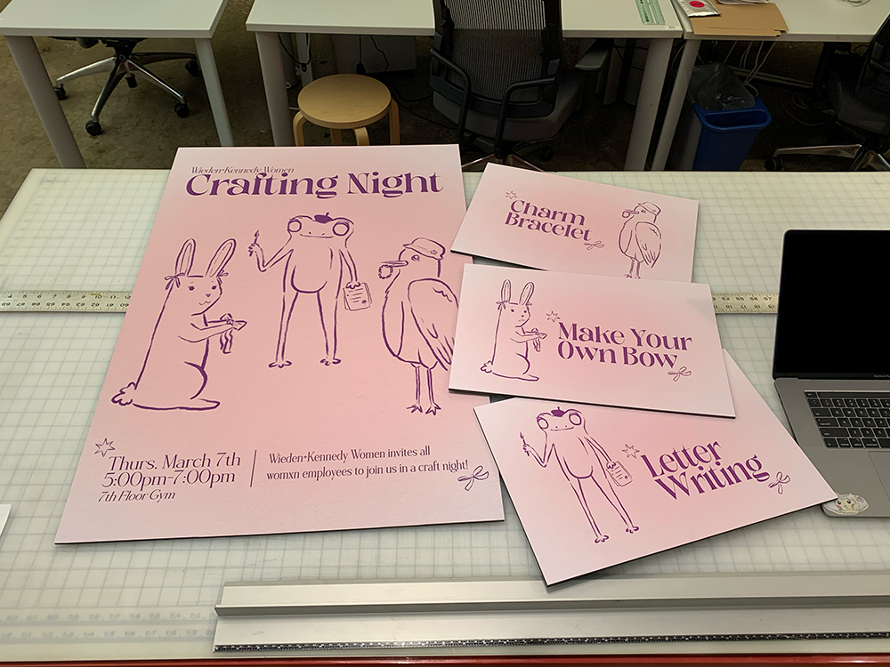 I designed this poster as a Studio Artist with Wieden+Kennedy for the upcoming women’s ERG group event. I pitched an illustrated delicate cottagecore design. I illustrated crafty animal characters, each of whom holding items that were to be at the event itself.